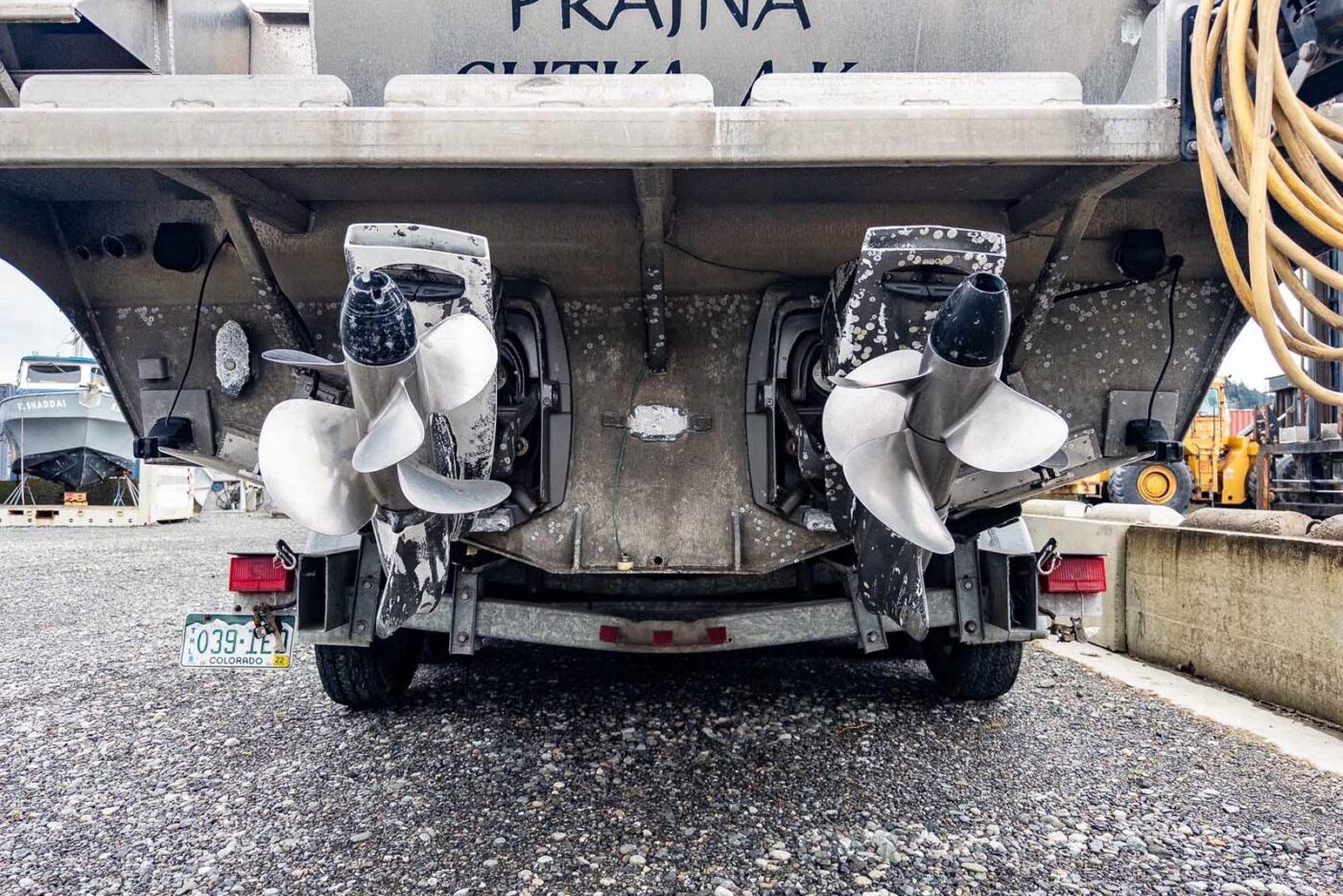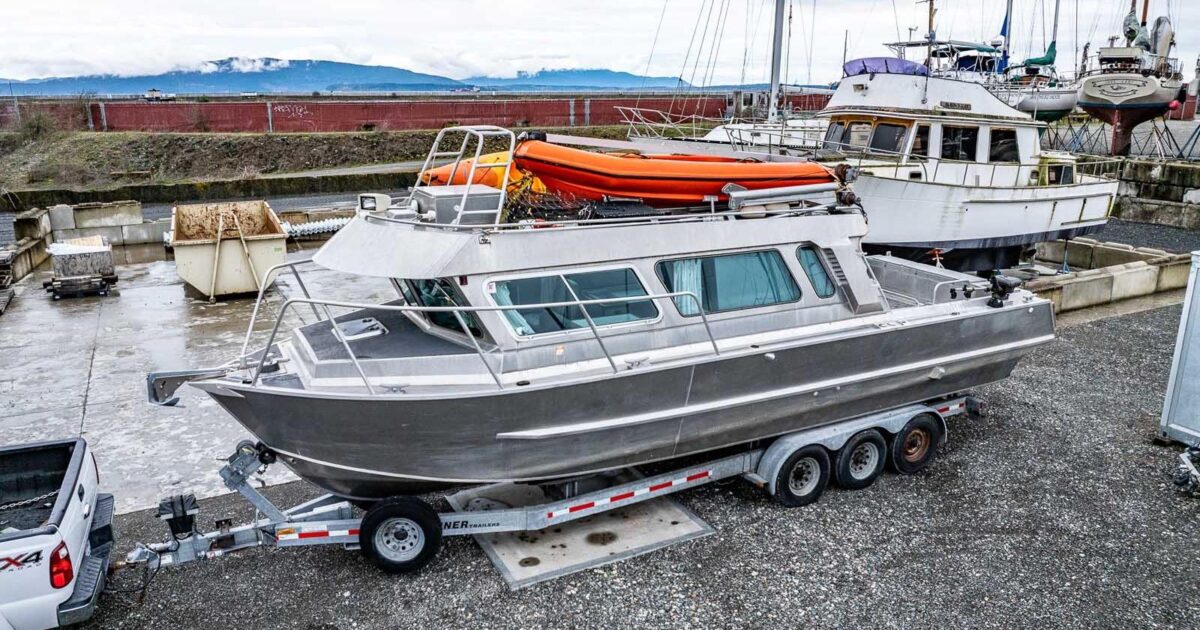 Lifetimer heavy duty gunwale and chine extensions, 6” reverse chines, contoured swim grid, two 6” x 12’ lifting strakes, seven cast aluminum weld on cleats, one welded bow eye, two welded stern eyes, transducer bracket, and zinc anode protection