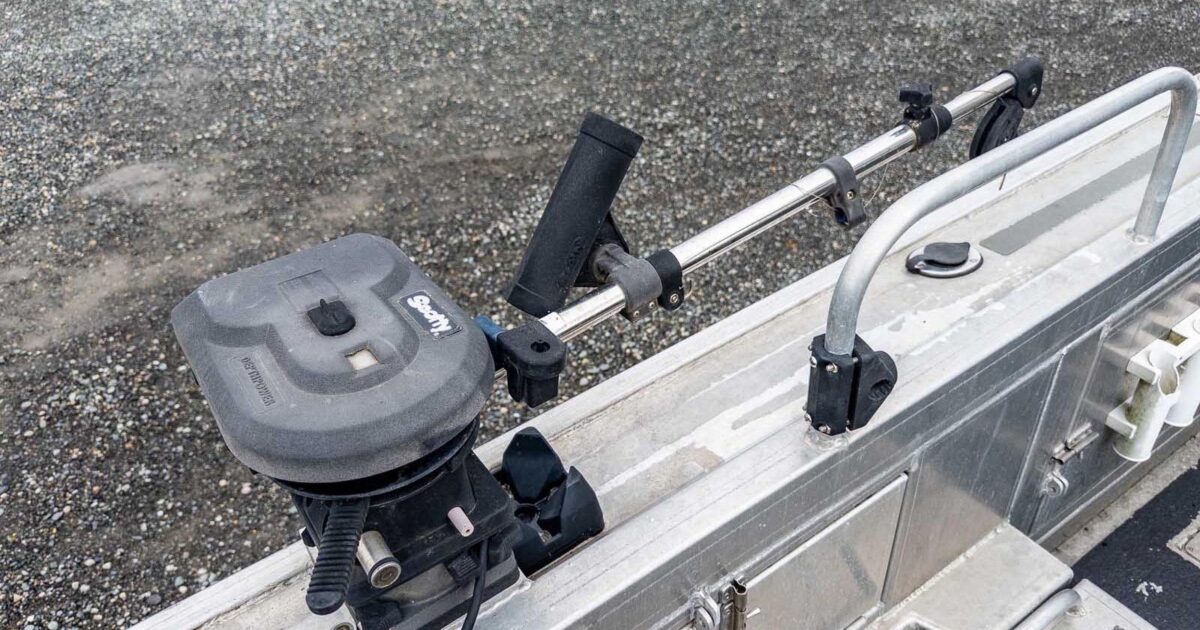 - Additional downrigger pad beside transom door for pot puller