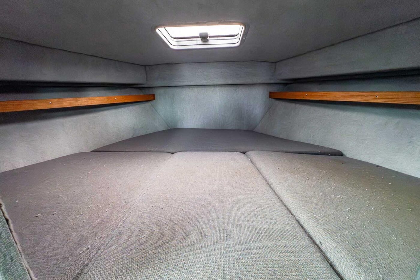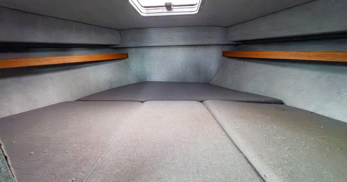 V-berth in bow c/w Lewmar 13” x 16” hatch in cuddy roof, two Perko dome style interior lights, upholstered bunk cushions & fuzz hull liner