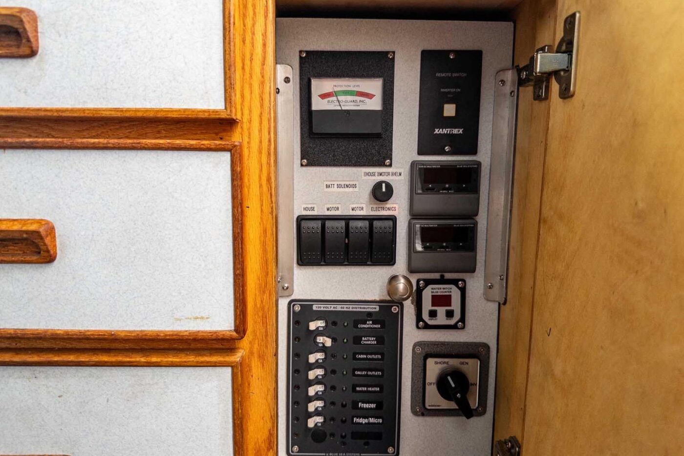 - Three additional 110V GFI plugs to be installed — one in galley, one at main station & one in cuddy
