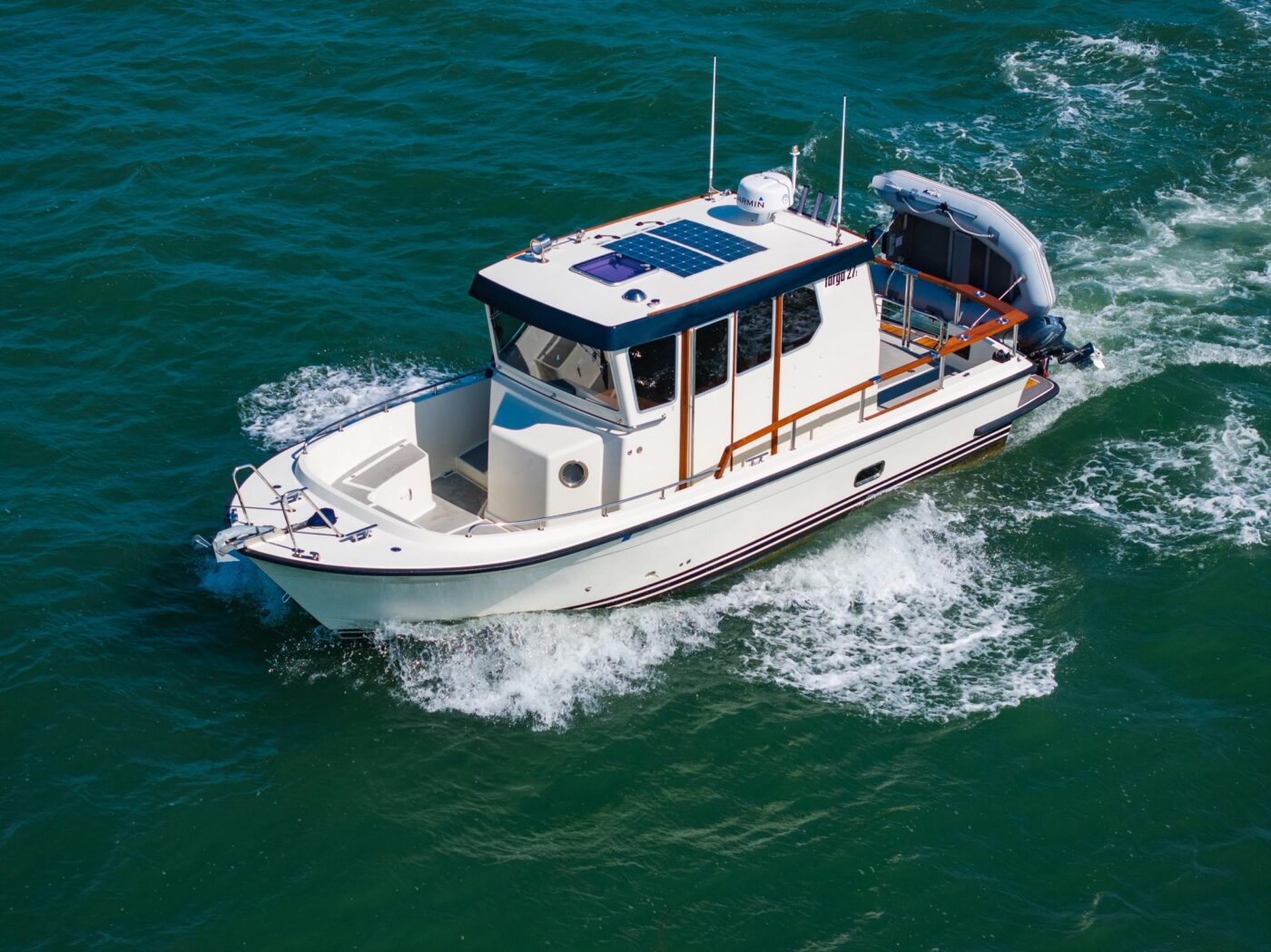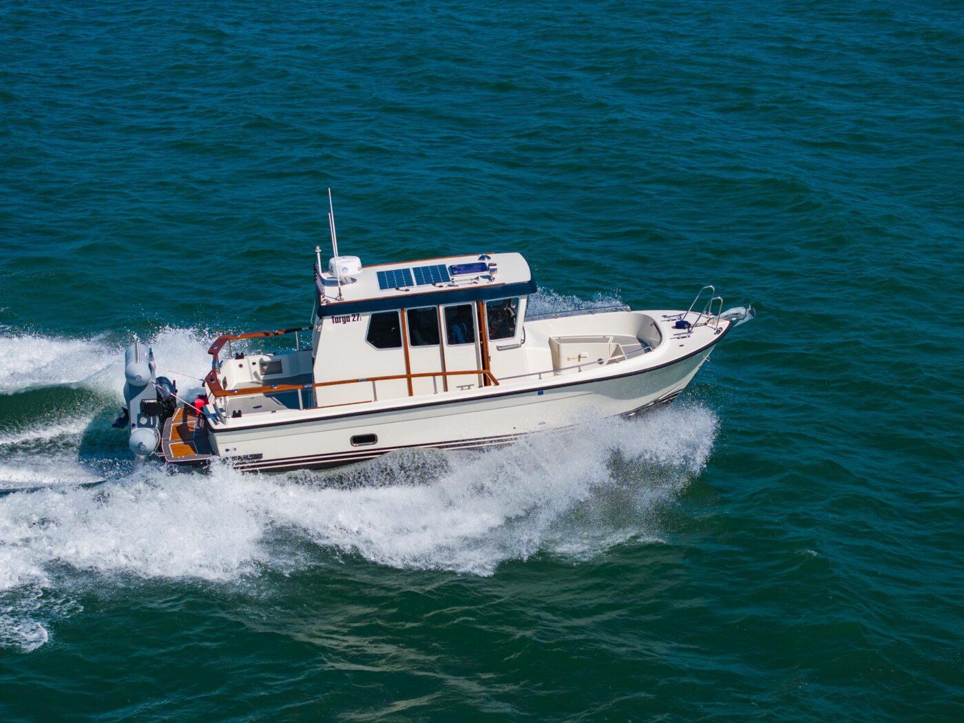 Get to the cruising and fishing grounds fast, safely, and efficiently in this Targa 27.1 equipped with a Volvo Penta D6-370. She offers full walk-around decks, amazing visibility, and an incredible rough water ride, all while cruising 29 knots at 2.2nm per gallon!