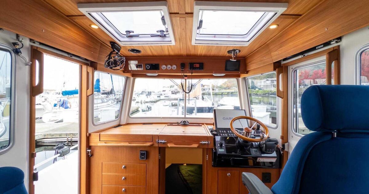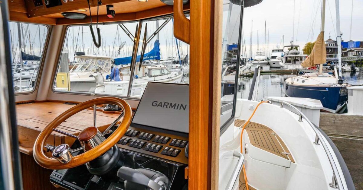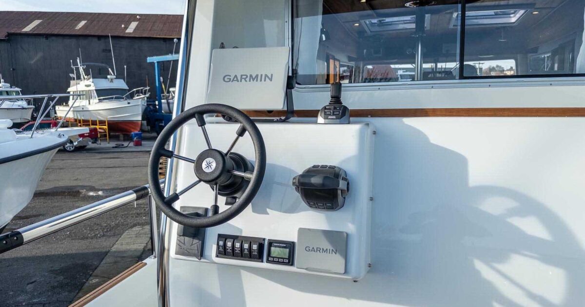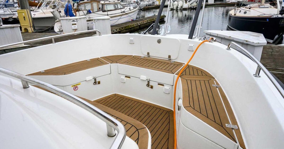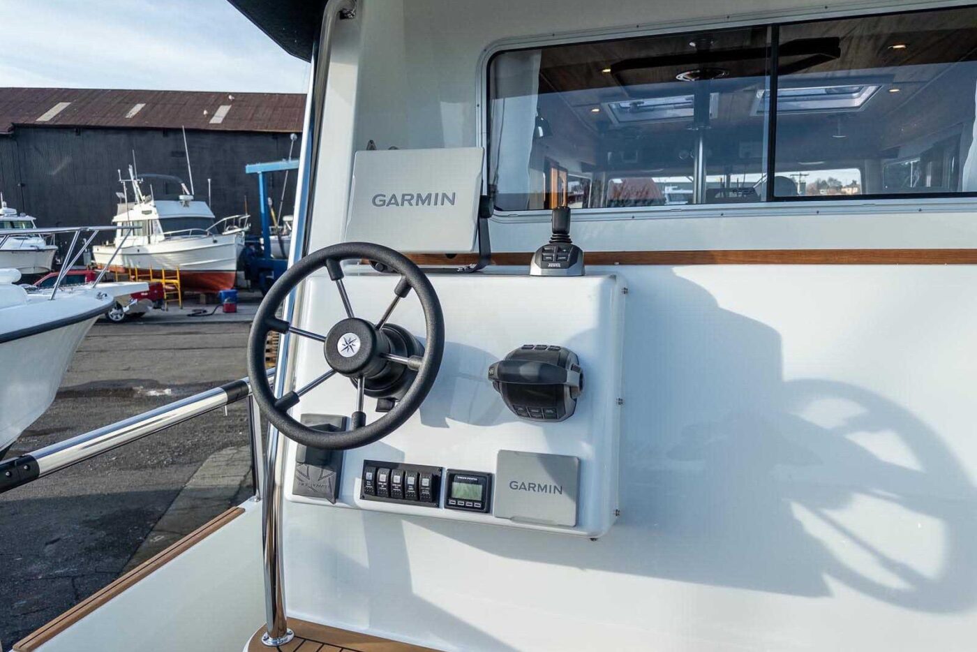 This particular 30.1 was custom-ordered for the Pacific Northwest and includes an extensive list of factory and dealer upgrades—highlighted by Volvo Penta’s D6-440/DPI with joystick, Flexiteek decking, and a fully integrated Garmin navigation suite.