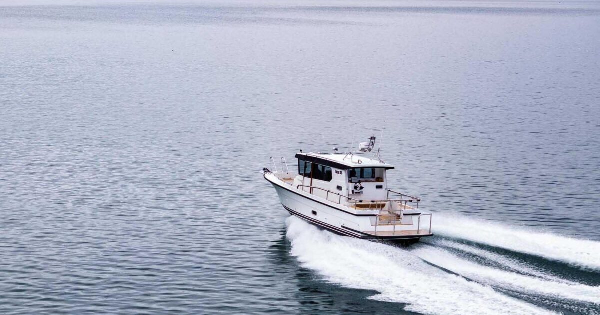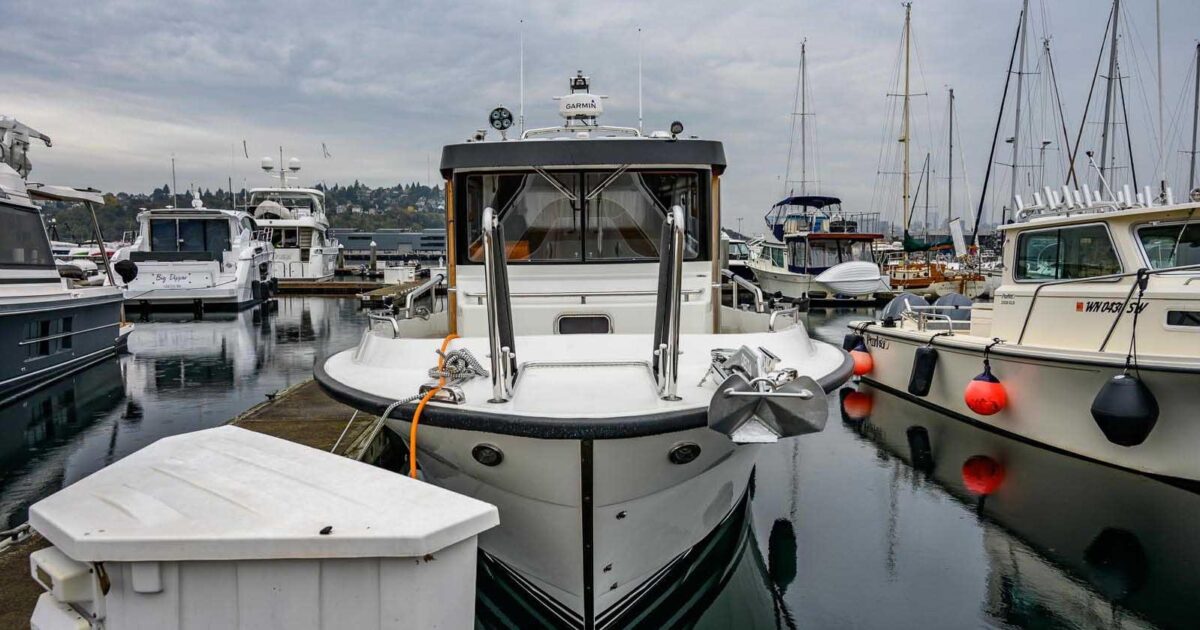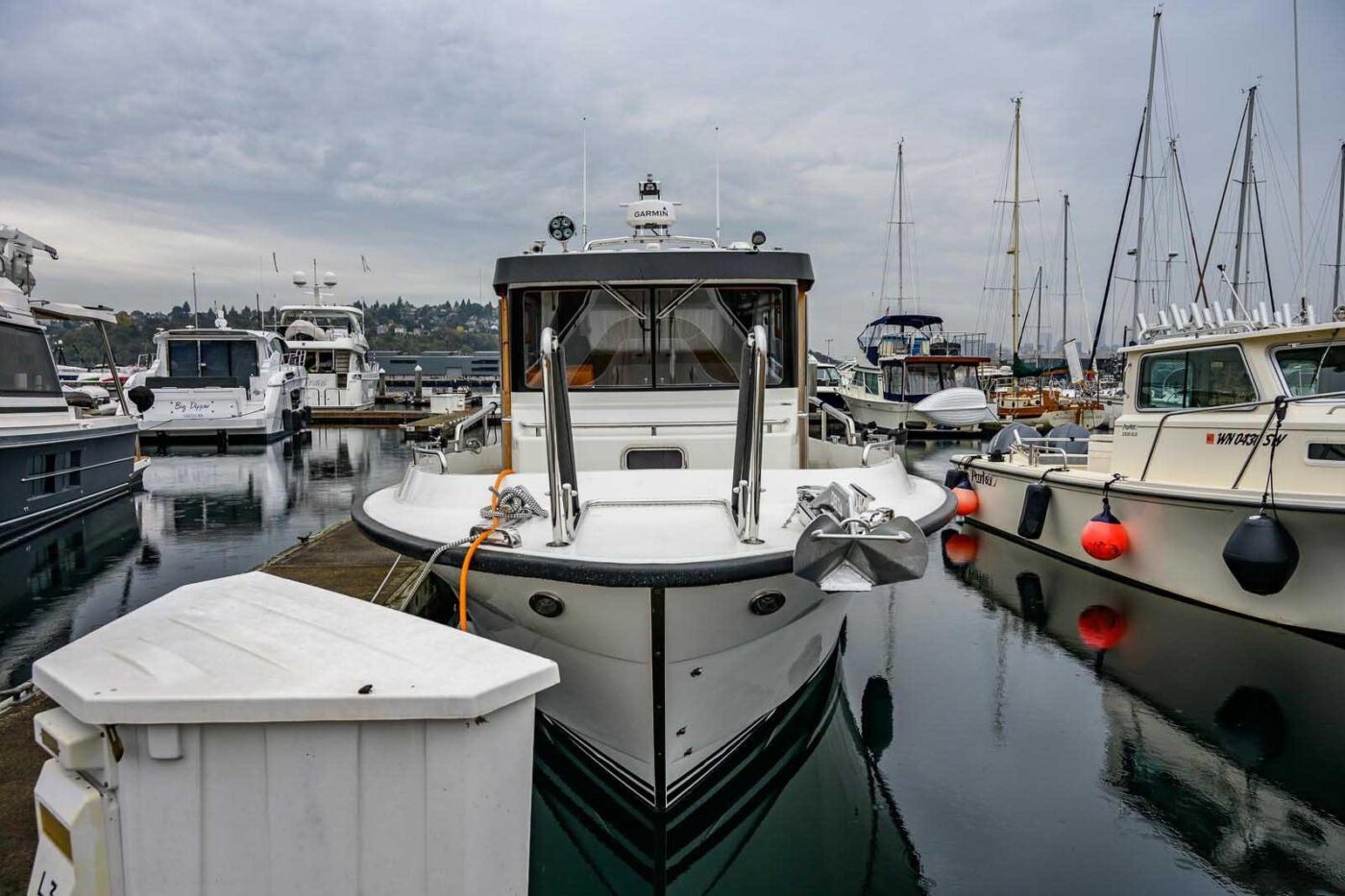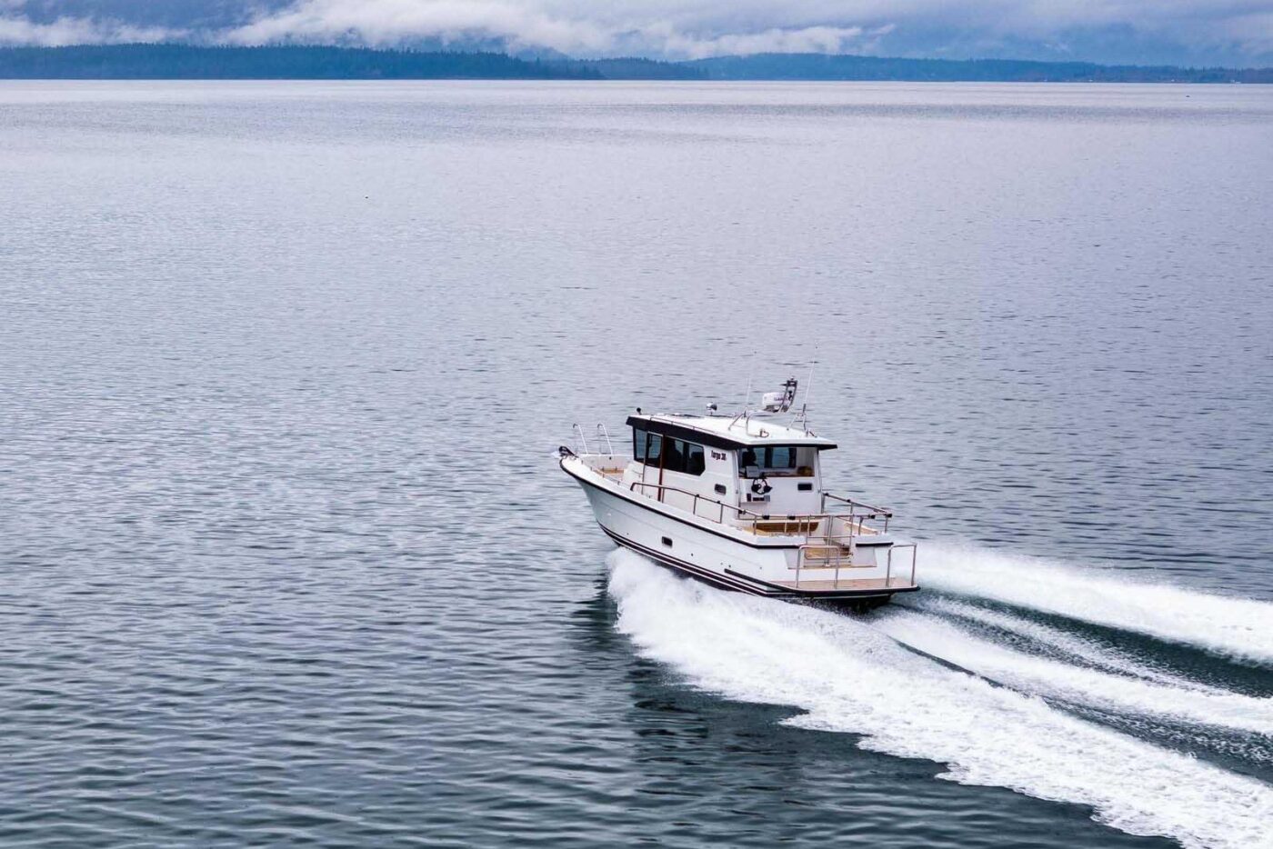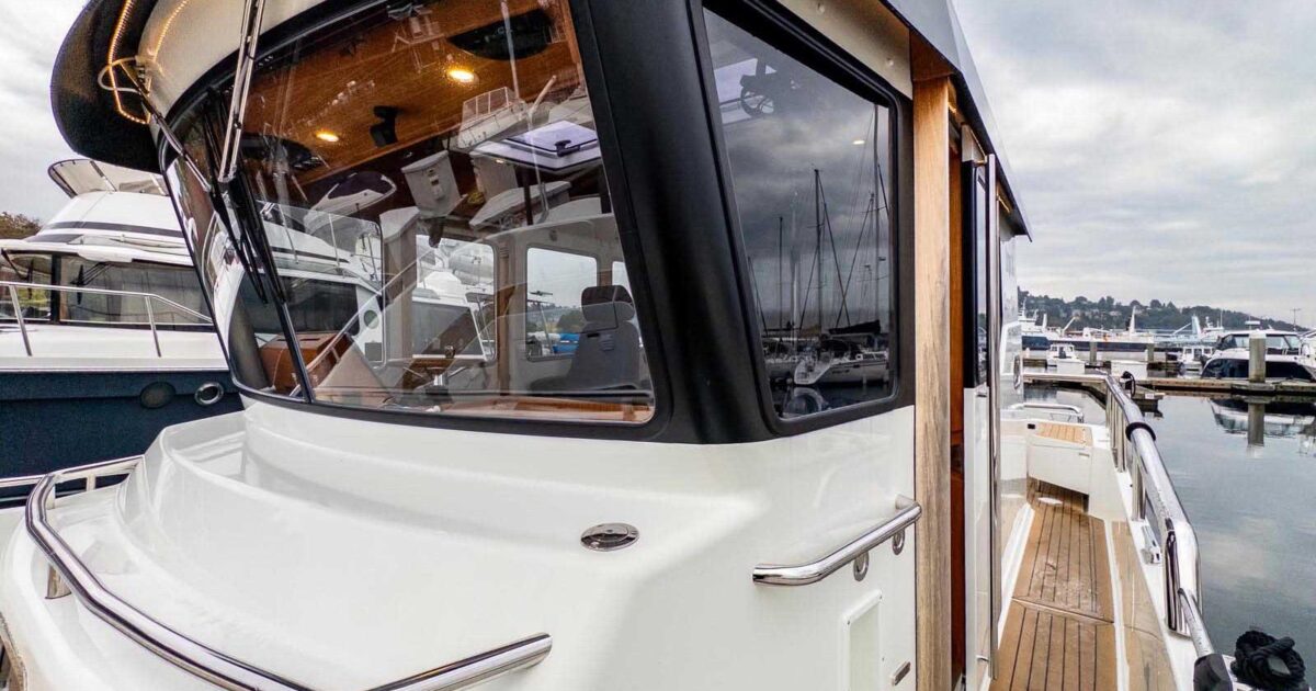 This particular 30.1 was custom-ordered for the Pacific Northwest and includes an extensive list of factory and dealer upgrades—highlighted by Volvo Penta’s D6-440/DPI with joystick, Flexiteek decking, and a fully integrated Garmin navigation suite.