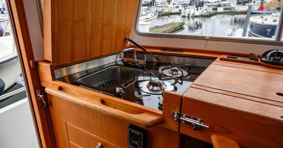 - Galley incl 2-burner Can LPG cooker, 12V ignition
