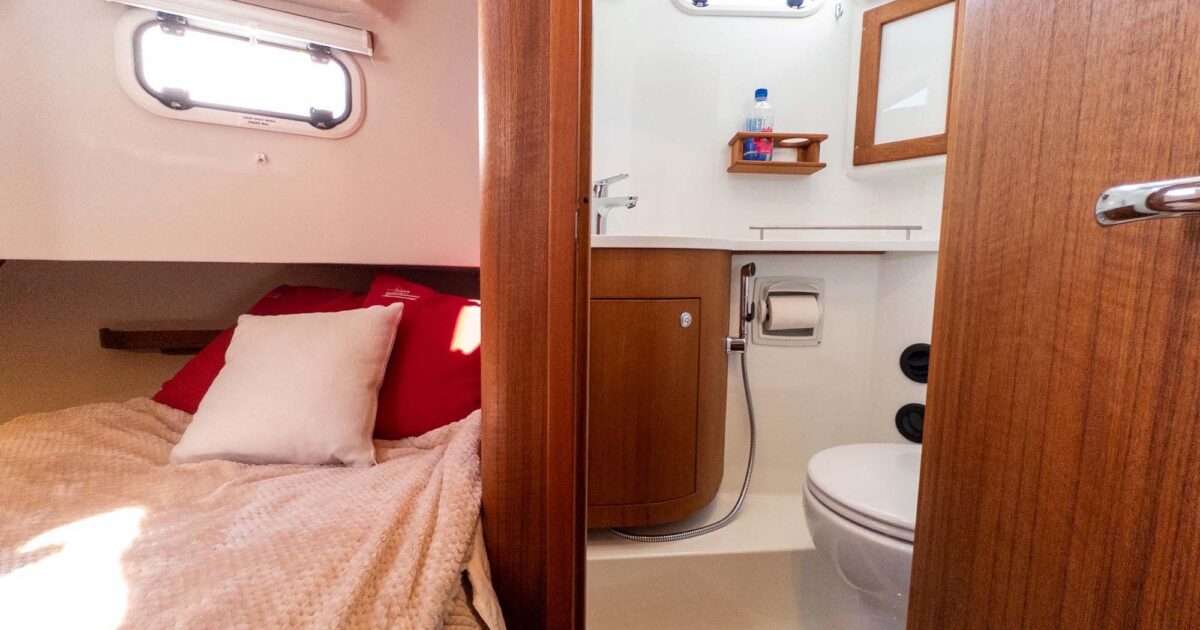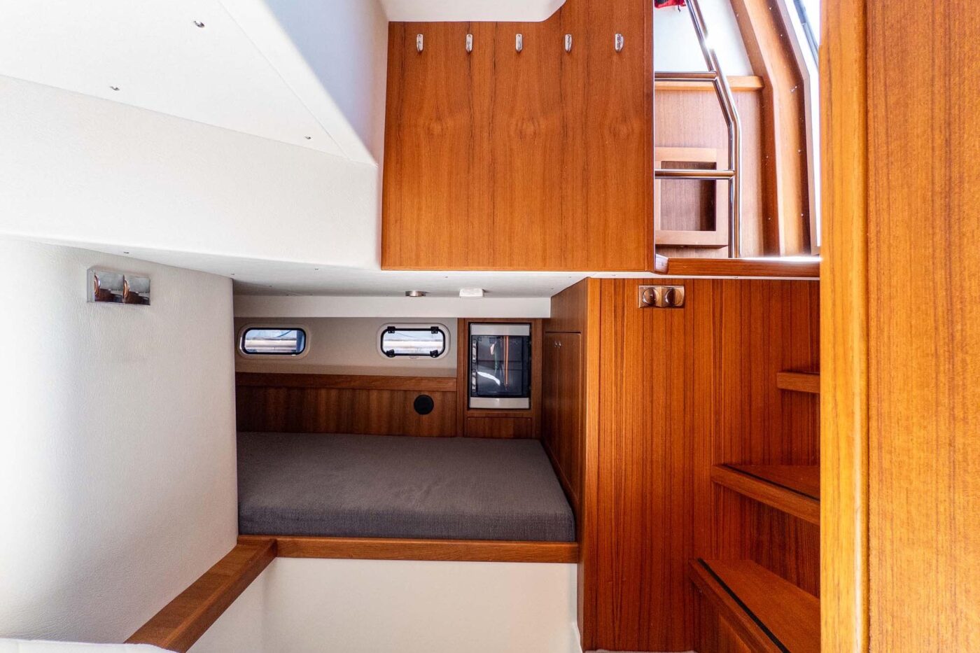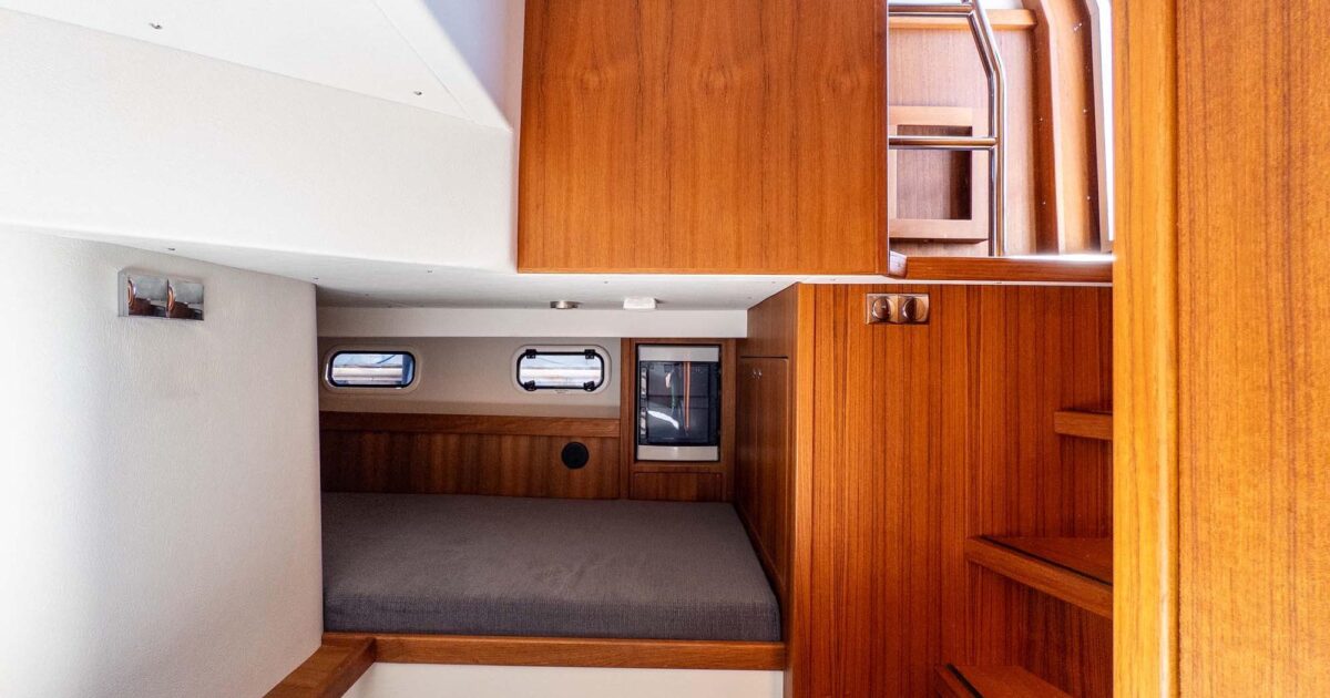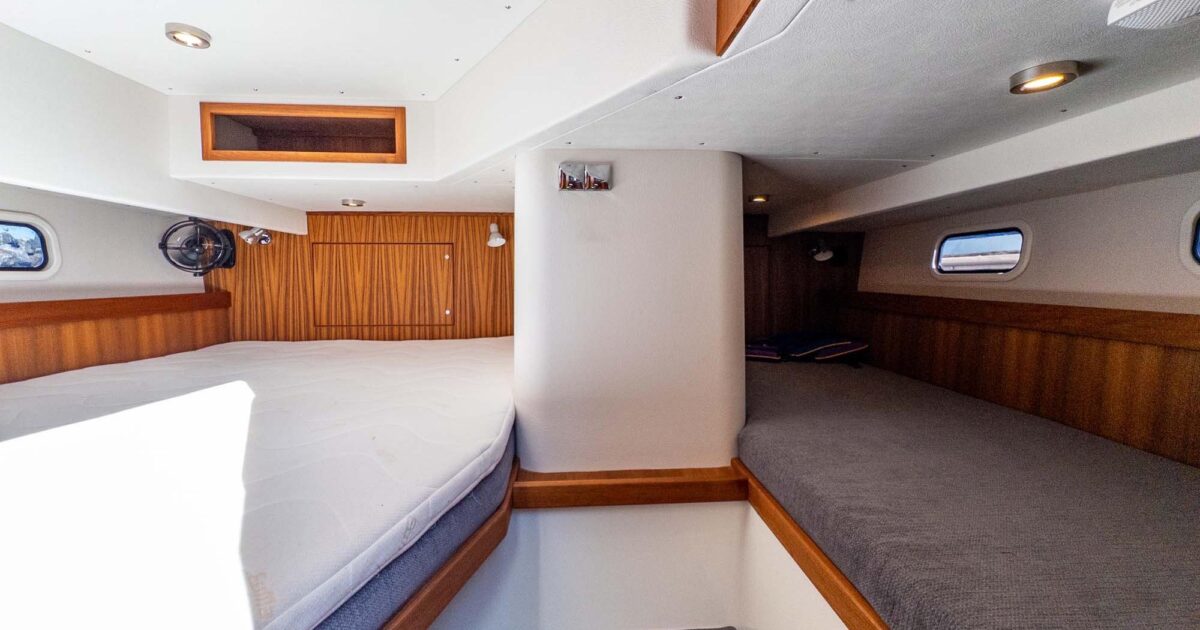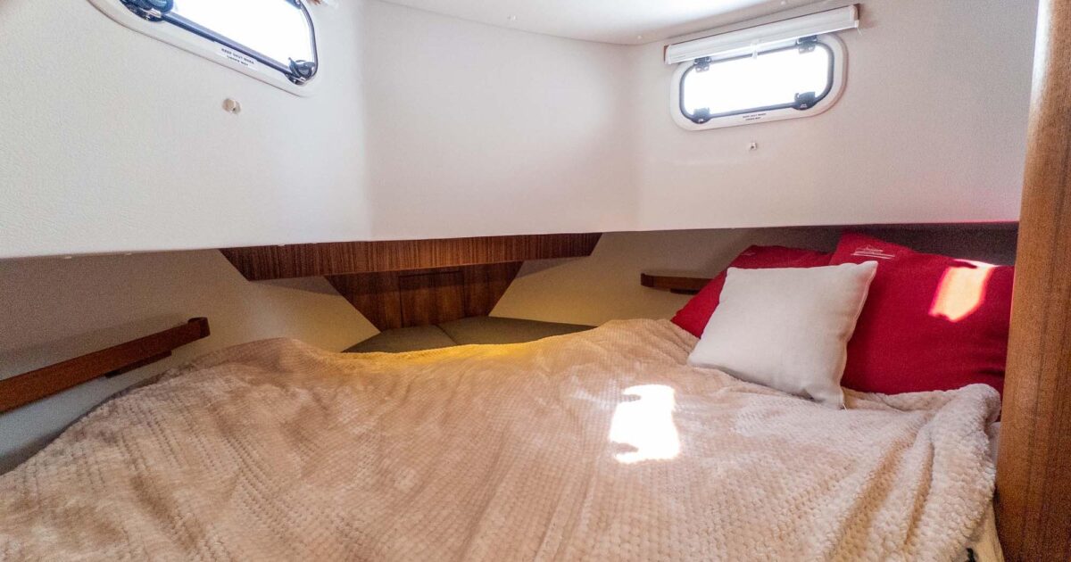 - Double berth in extended fore cabin with fore deck hatch plugged