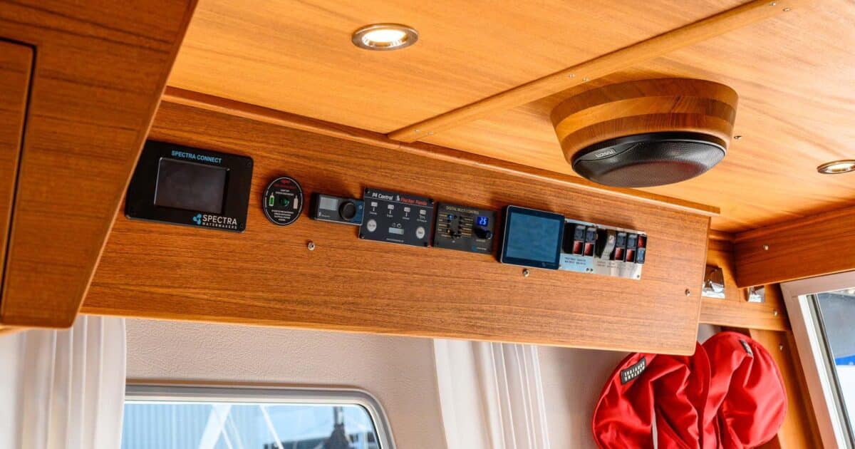 - Extra 120 V outlet: Both Toilets, behind L-sofa, engine room