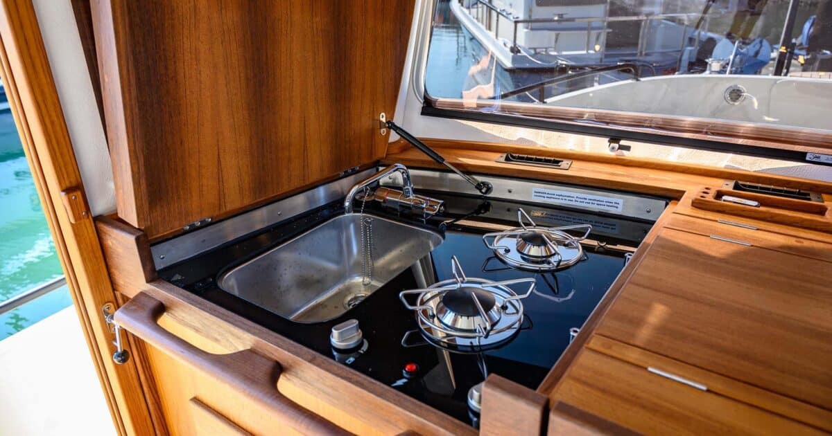 - 10 gallon (40L) Water Heater (upgrade) > gallev + toilet + aft deck