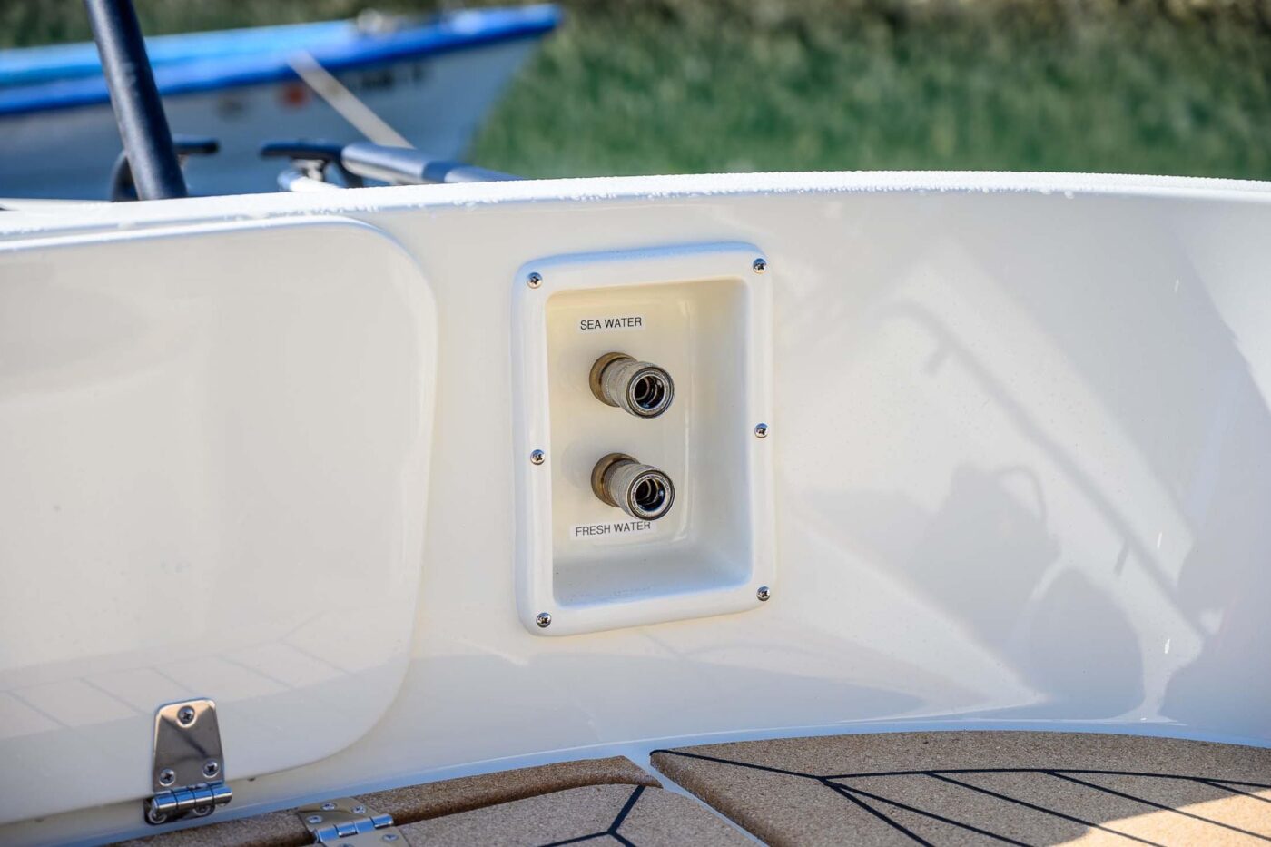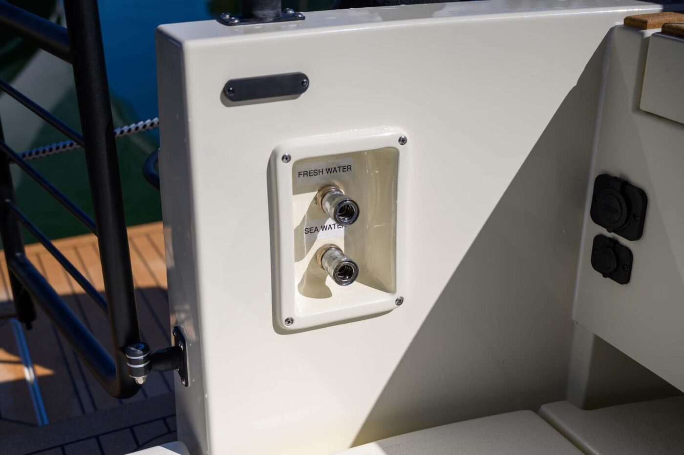 - Fresh water deck wash outlet in forward + aft cockpit (from galley pump)