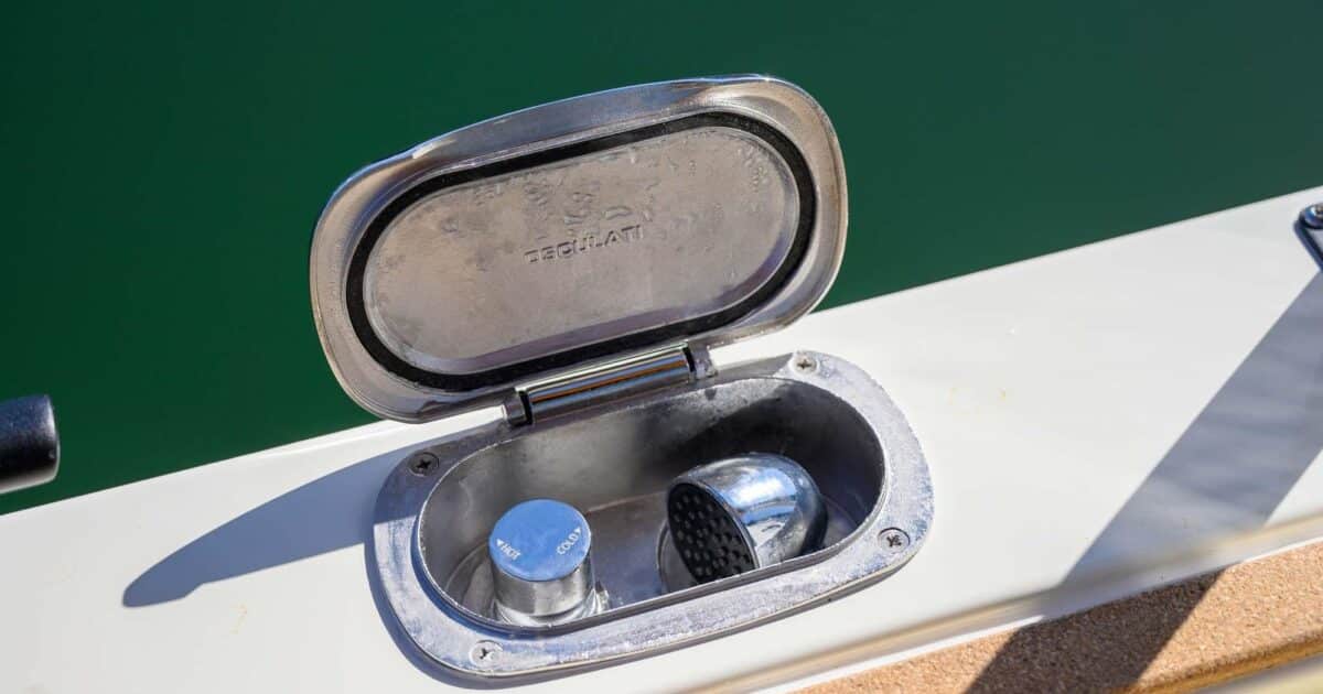 - Shower on aft deck - (Osculati 15.324.30) with stainless cover (from galley pump fresh water cold/hot)