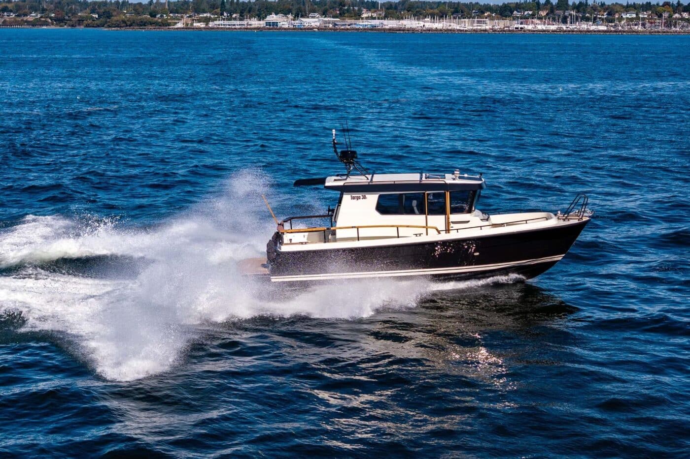 New, At Our Dock! – Targa 30.1 is a rock-solid boat that comes alive in rough seas. Like its sister boats, the T27.2 and T32, the T30.1 offers a wide array of design solutions that showcase Targa’s attention to detail.