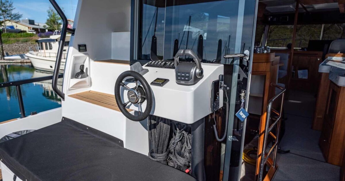 - Special external aft steering place C/L, steering wheel, switches - with rope hooks fwd and aft on station - NO Joystick