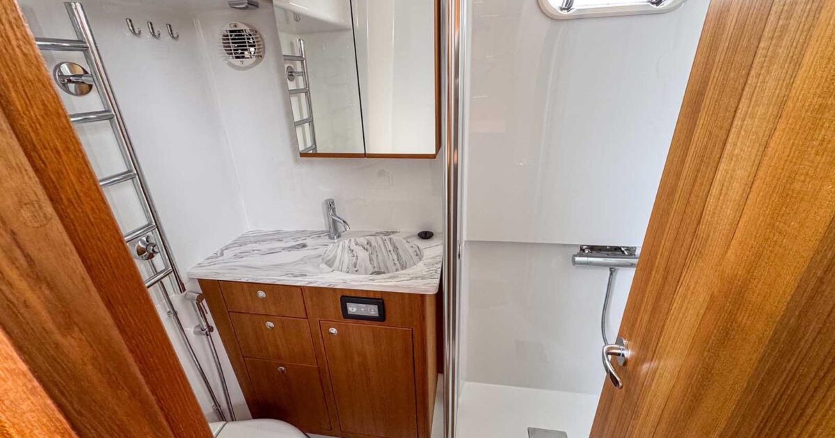 Accommodating two well-appointed cabins and two heads, the interior offers a perfect blend of luxury and functionality. The electric windlass adds convenience for anchoring, making your adventures hassle-free. With a cruising range of 350 miles, this Targa 46 is ready to take you on unforgettable journeys across the water.