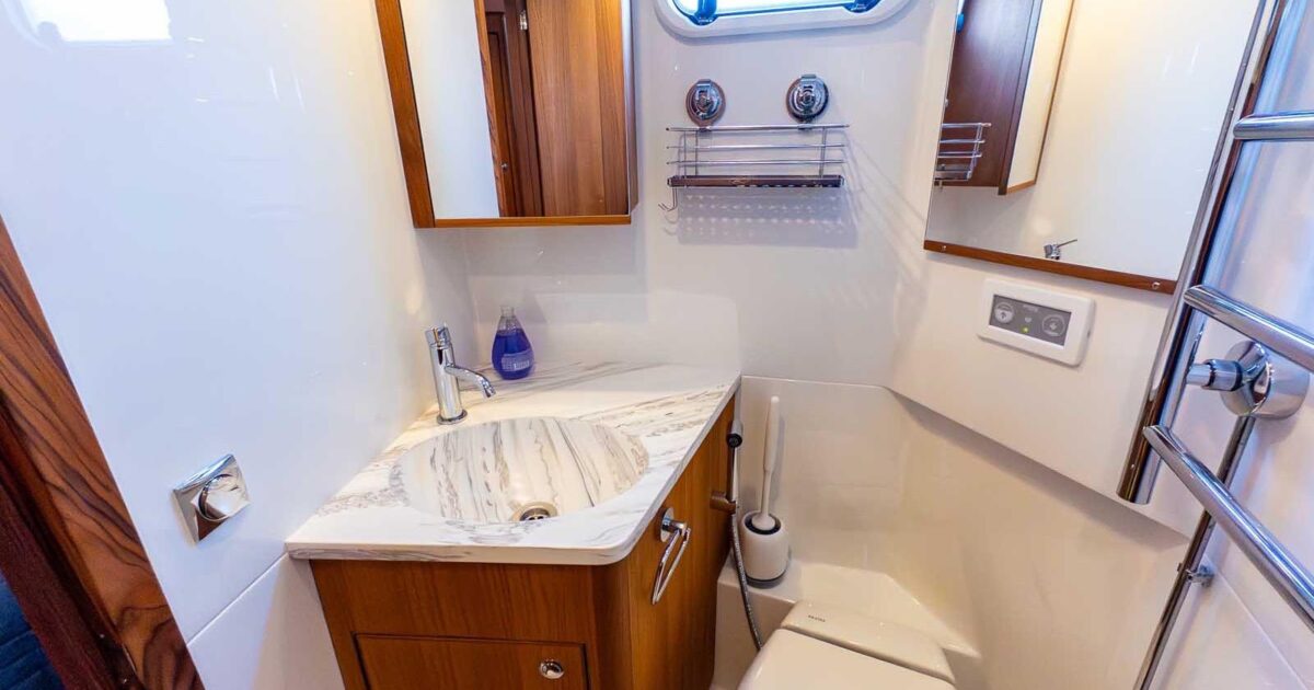 Accommodating two well-appointed cabins and two heads, the interior offers a perfect blend of luxury and functionality. The electric windlass adds convenience for anchoring, making your adventures hassle-free. With a cruising range of 350 miles, this Targa 46 is ready to take you on unforgettable journeys across the water.